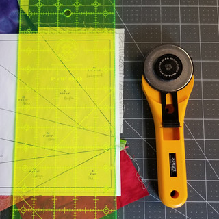 TRIM. Align your ruler along the 1/4" mark and trim the excess from the background fabric A1. Unfold the paper to it's original size. Do not trim the paper.